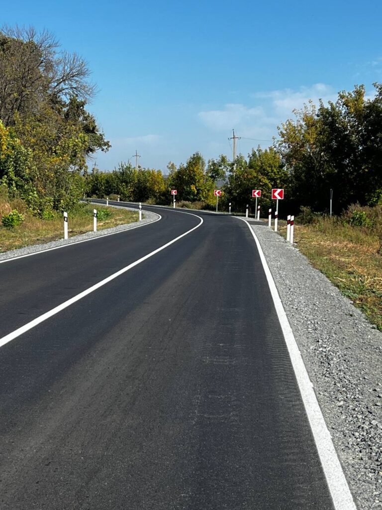 На автомобільній дорозі «/М-03/ – станцiя Гракове – Базалiївка – гребля» від автодороги «Чугуїв – Мілове» до с. Леб’яже завершені роботи з організації безпеки дорожнього руху, а саме: нанесено дорожню розмітку, встановлено нові дорожні знаки та сигнальні стовпчики.